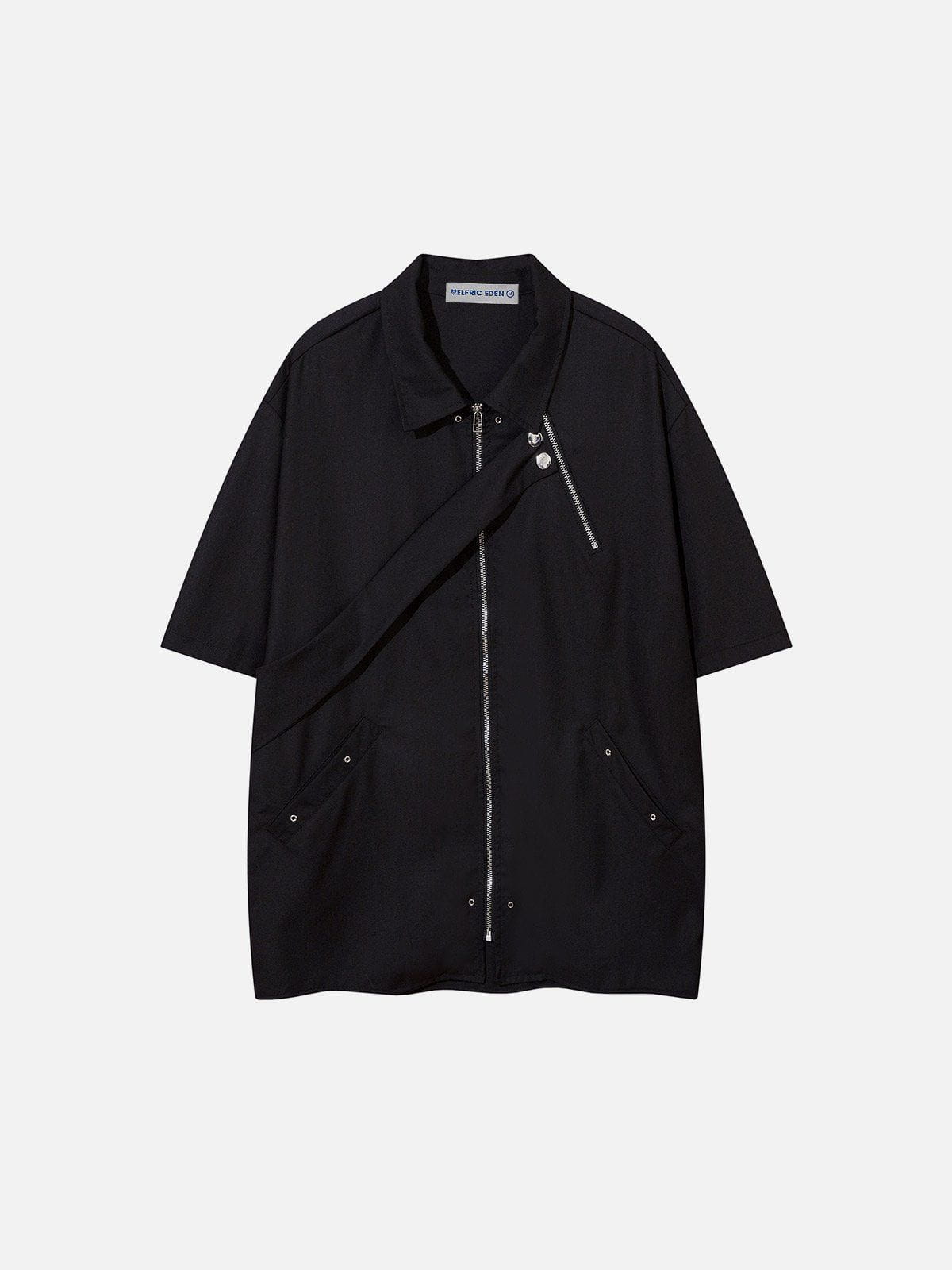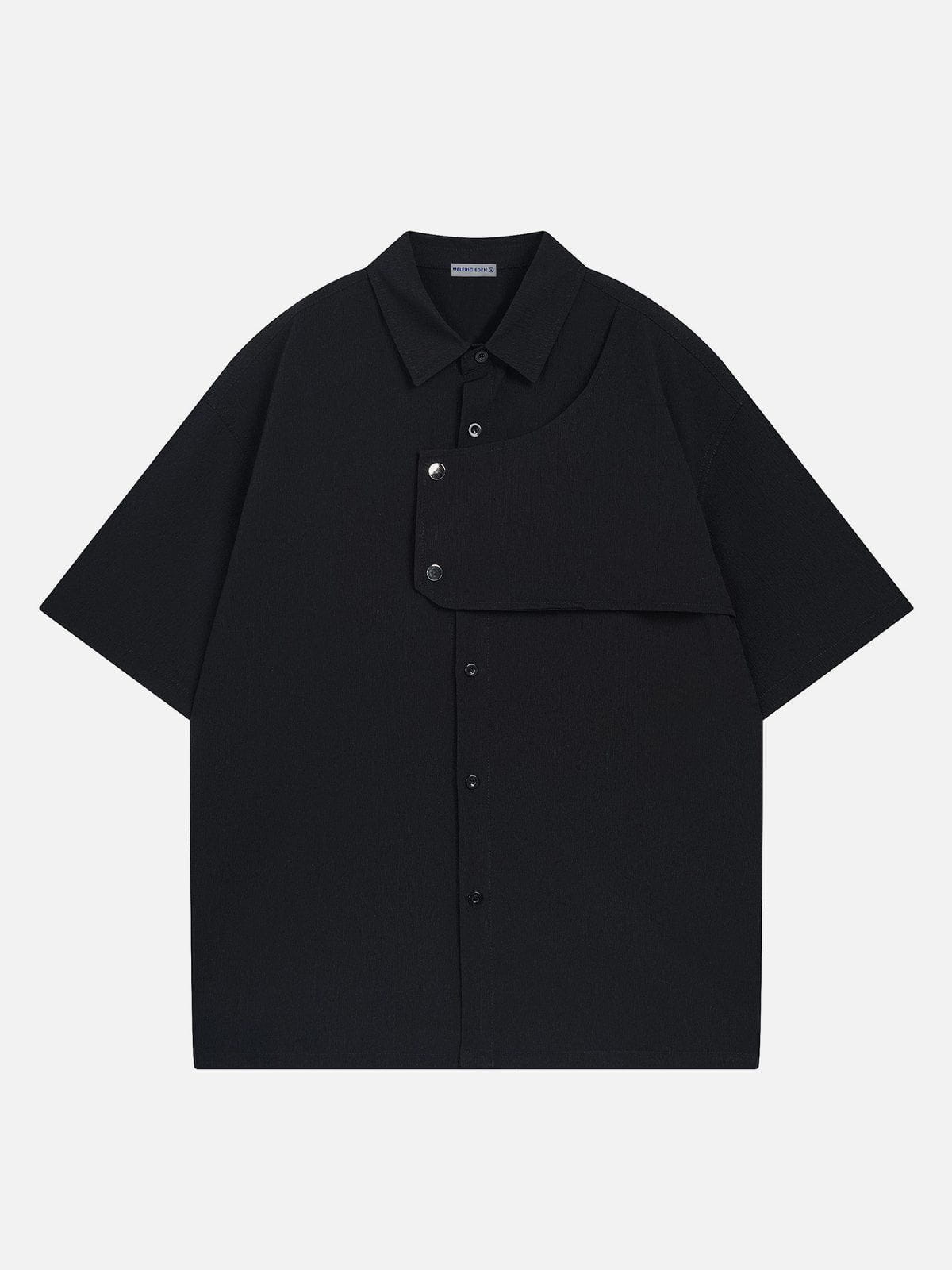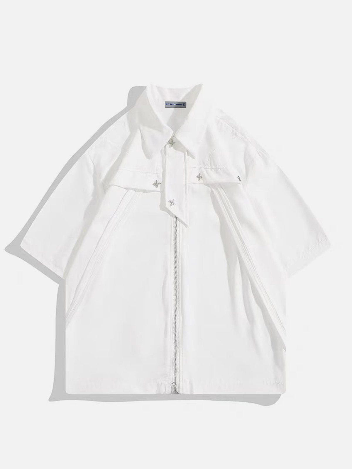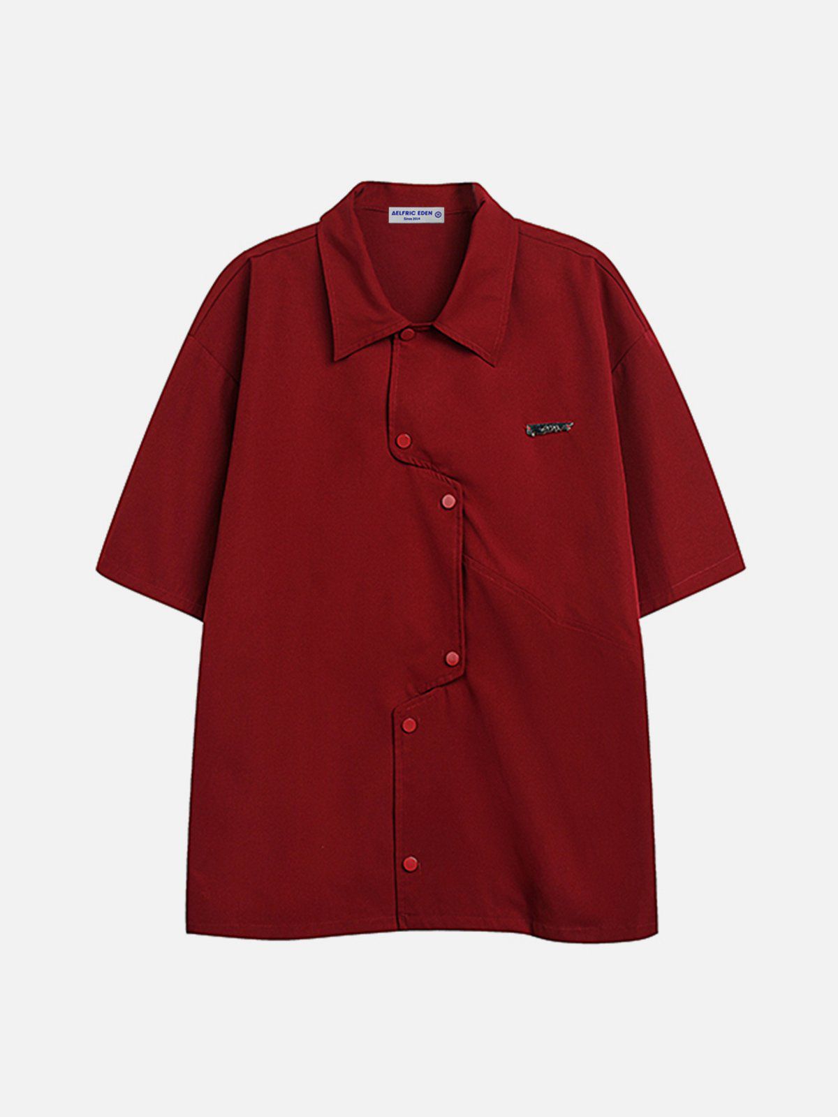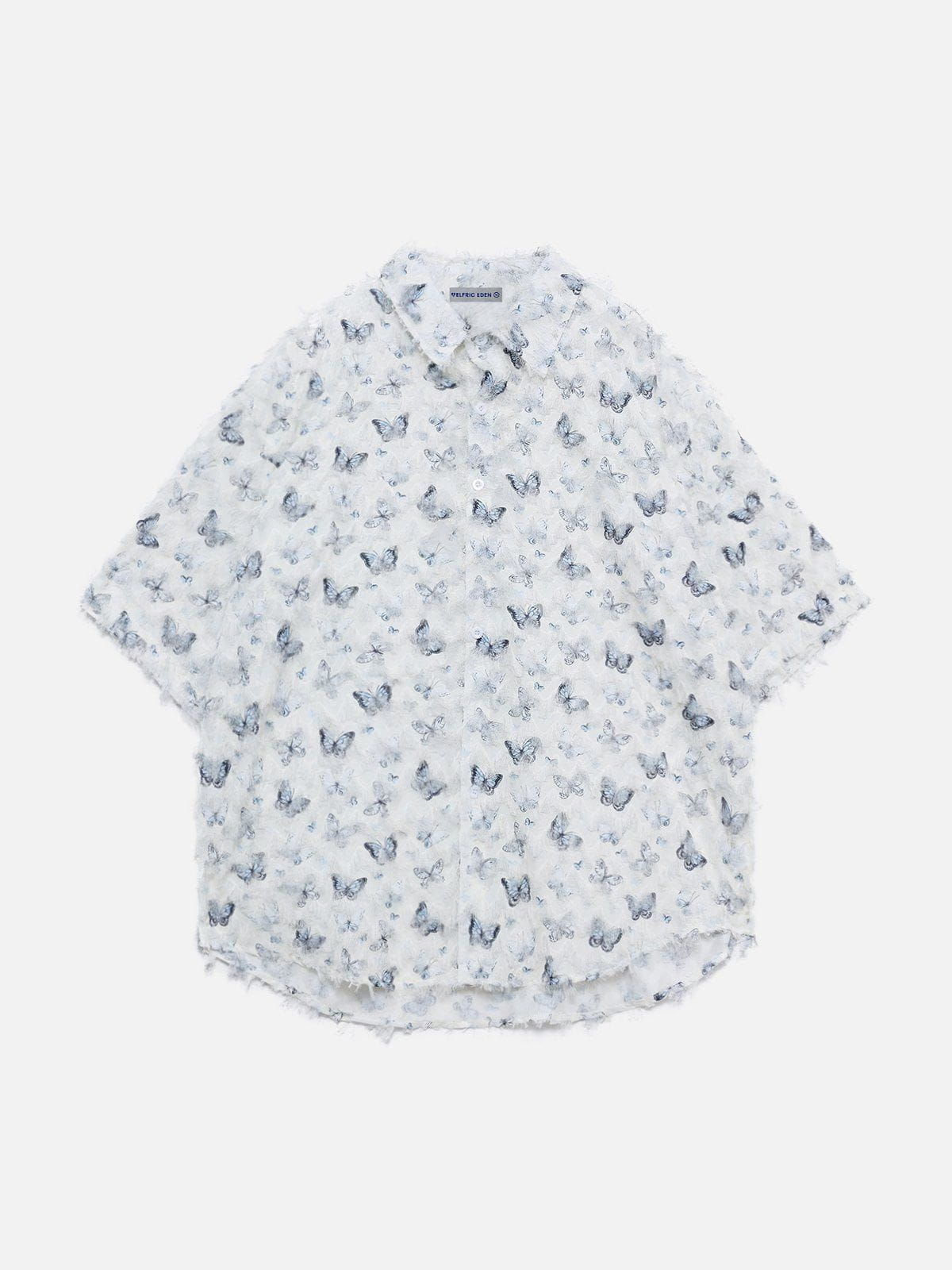 Split Blue Heart Embroidery Short Sleeve Shirt
