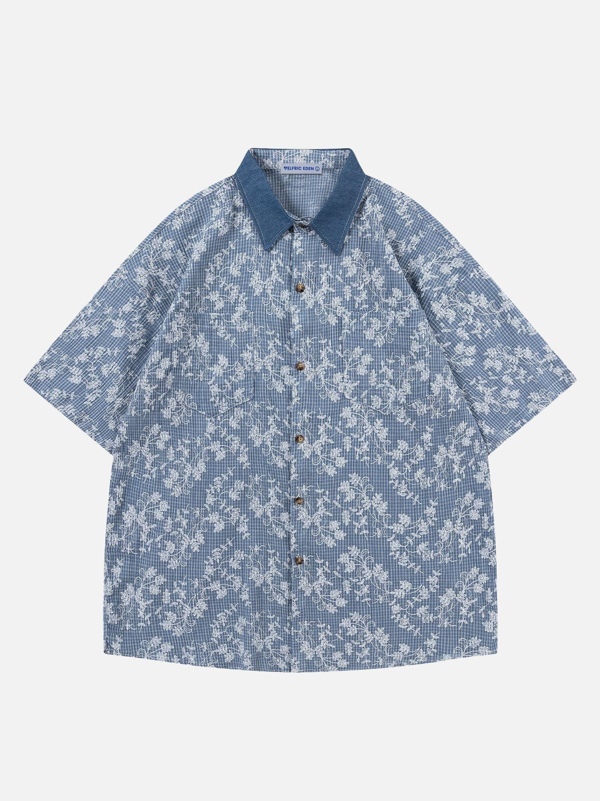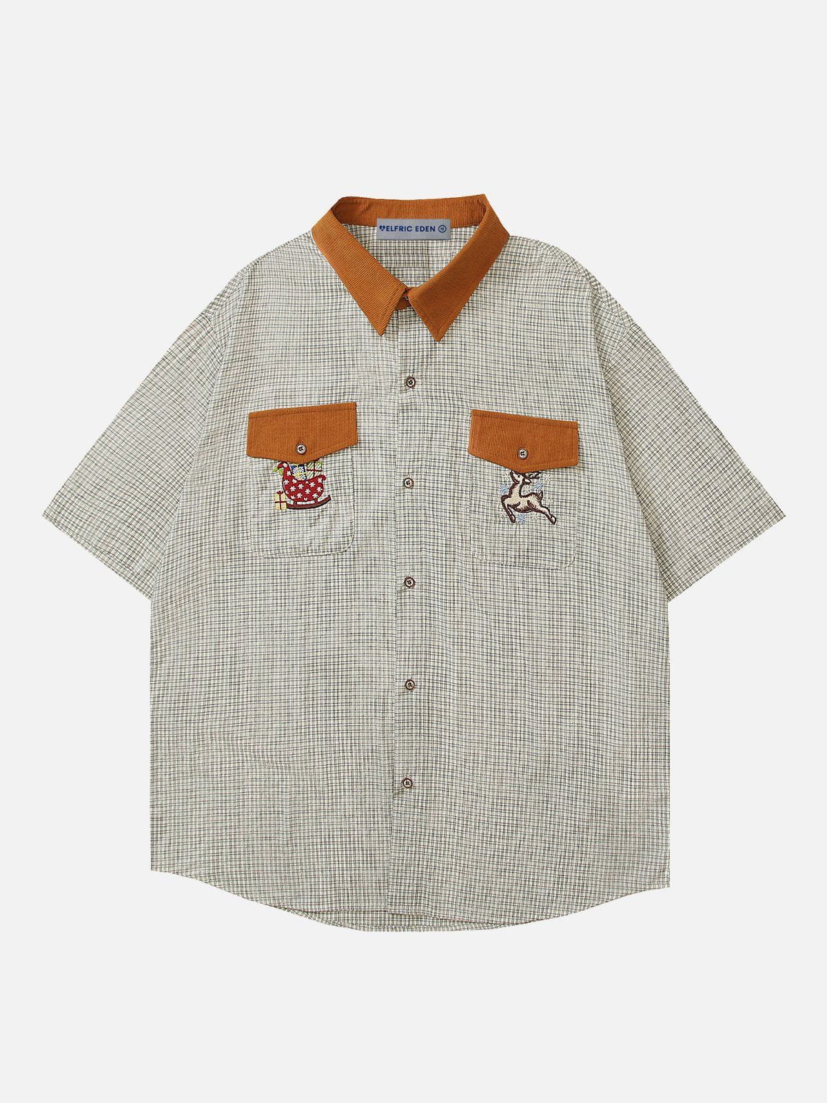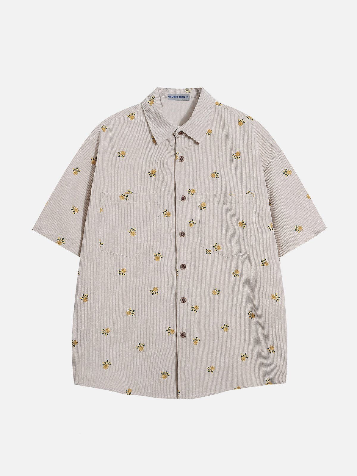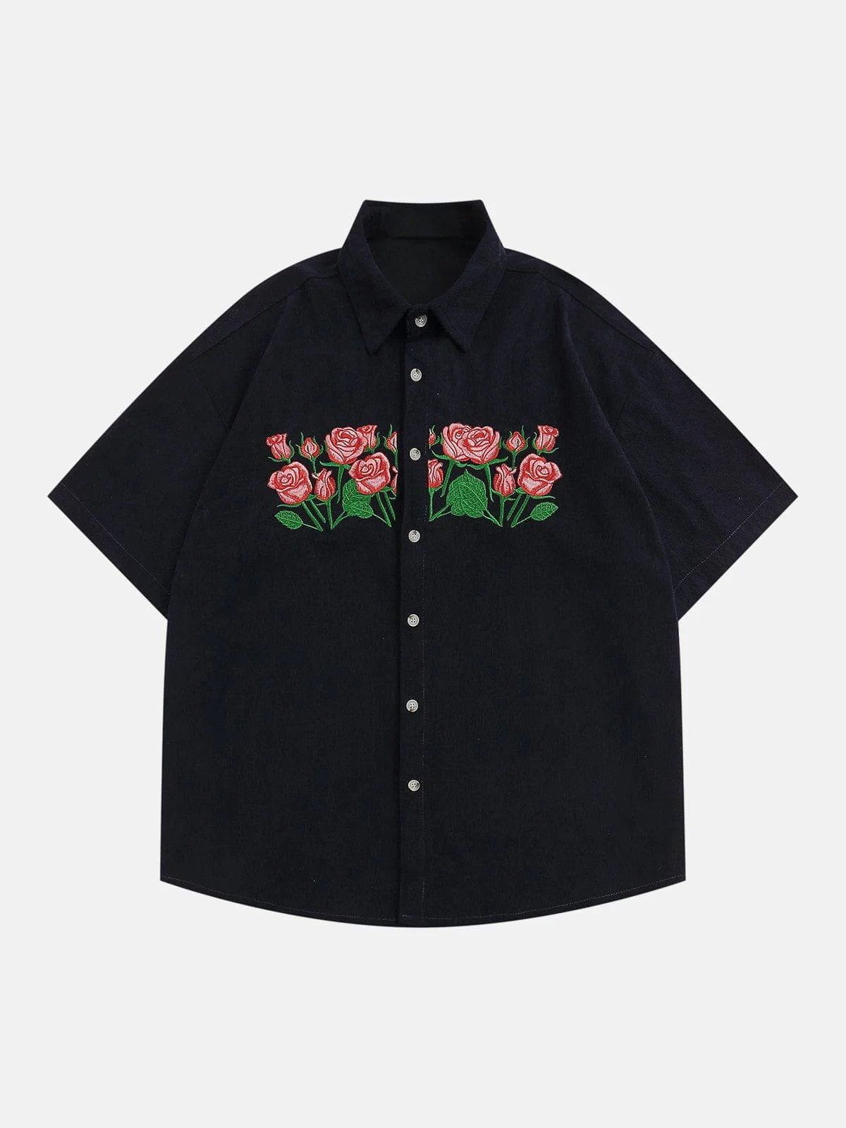 Rose Embroidered Corduroy Short Sleeve Shirt