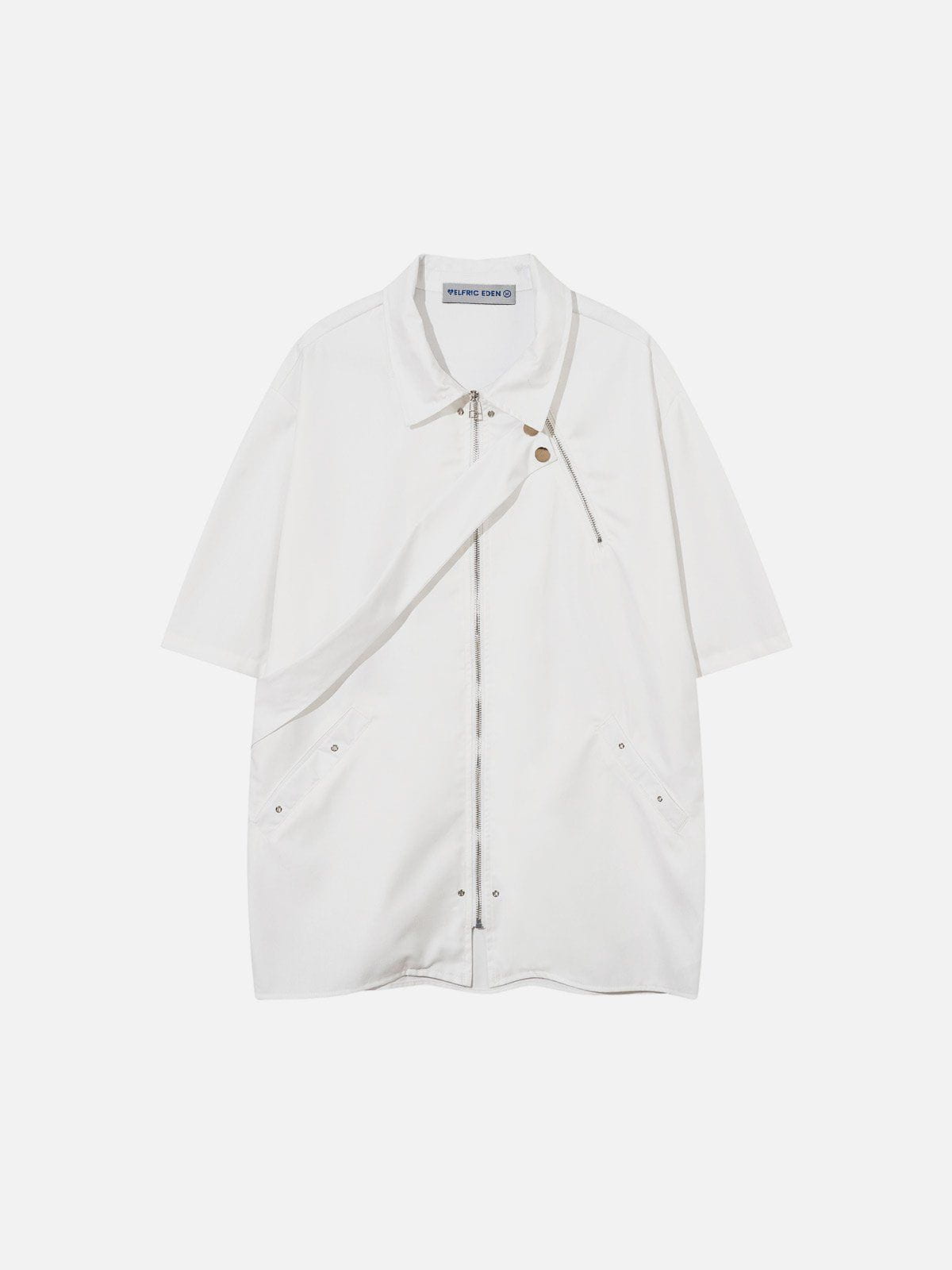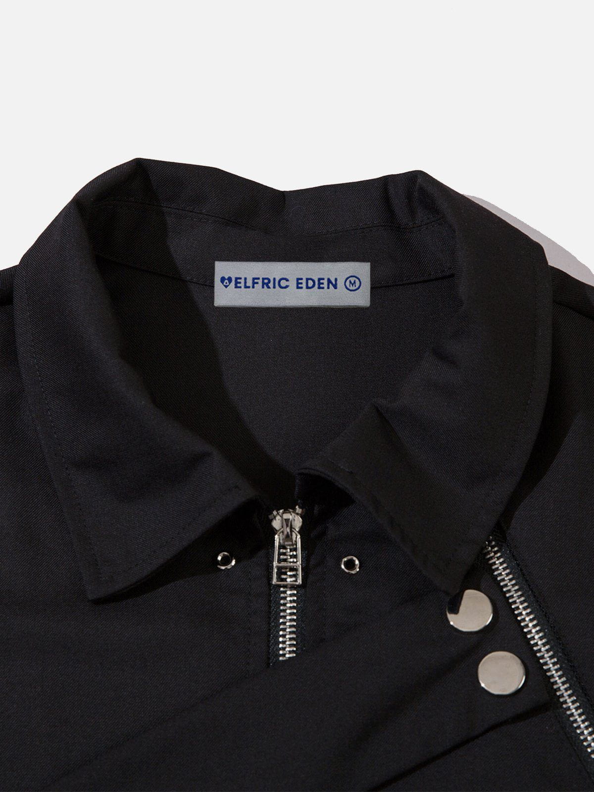 Clothing details: Irregular Zip Up.