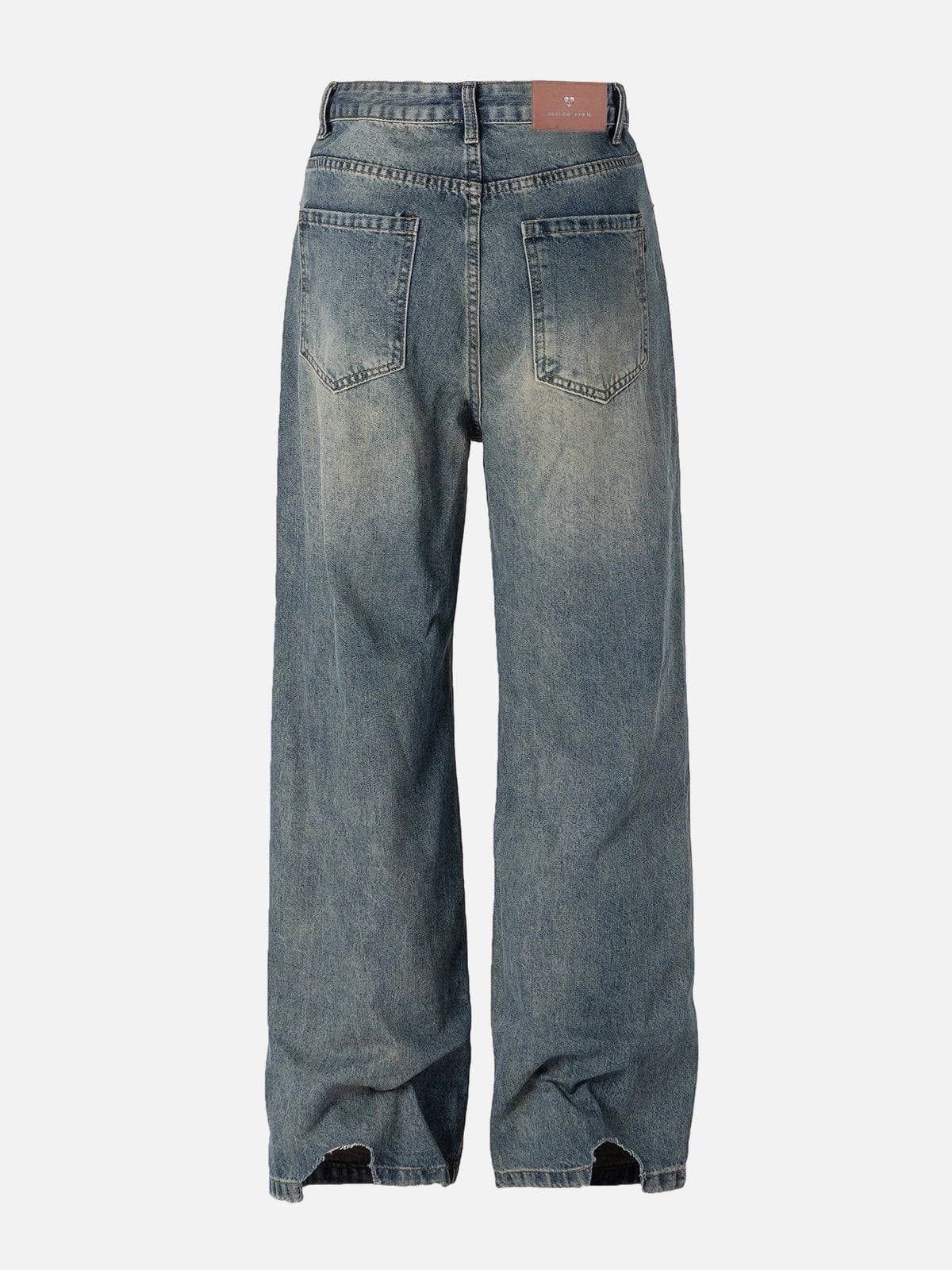 Revitalize your style with our vintage-inspired denim. These comfy, chic jeans feature subtle distressed details, a unique cut at the back, and a trendy notch design at the ankle. Embrace simplicity with a touch of artistry, capturing the essence of carefree dreaming in every pair.