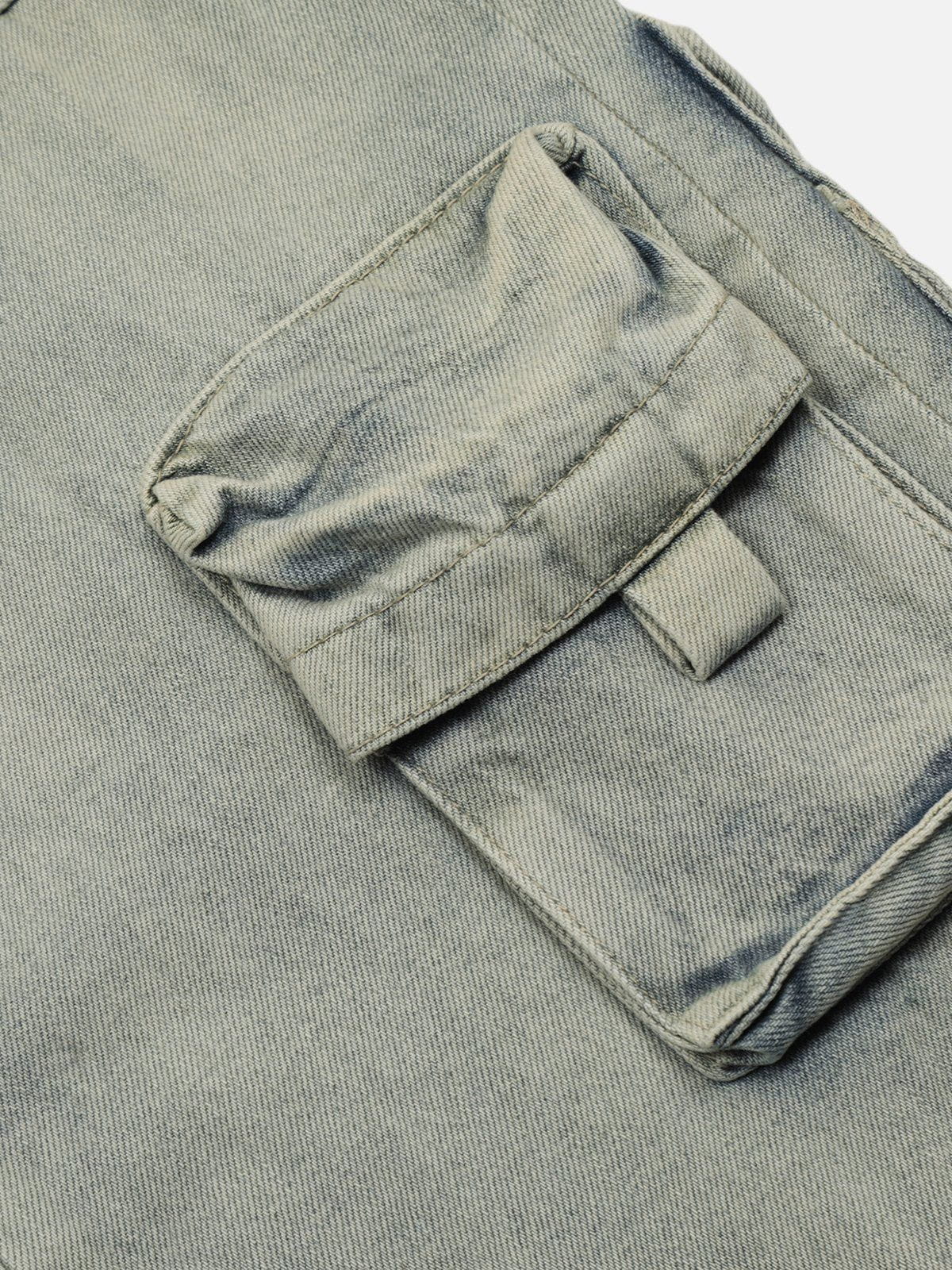 Multi Pocket Washed Loose Jeans