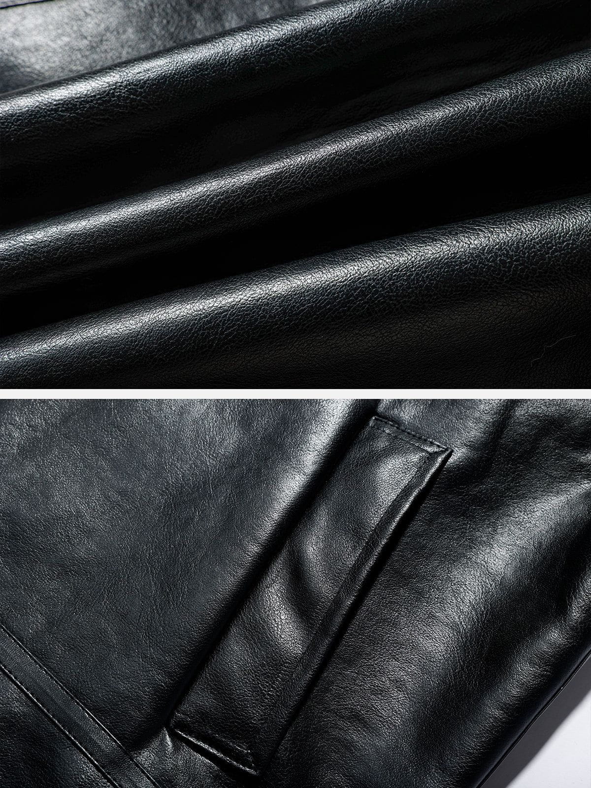 With a classic length, sleek,  smooth faux Leather versatile silhouette