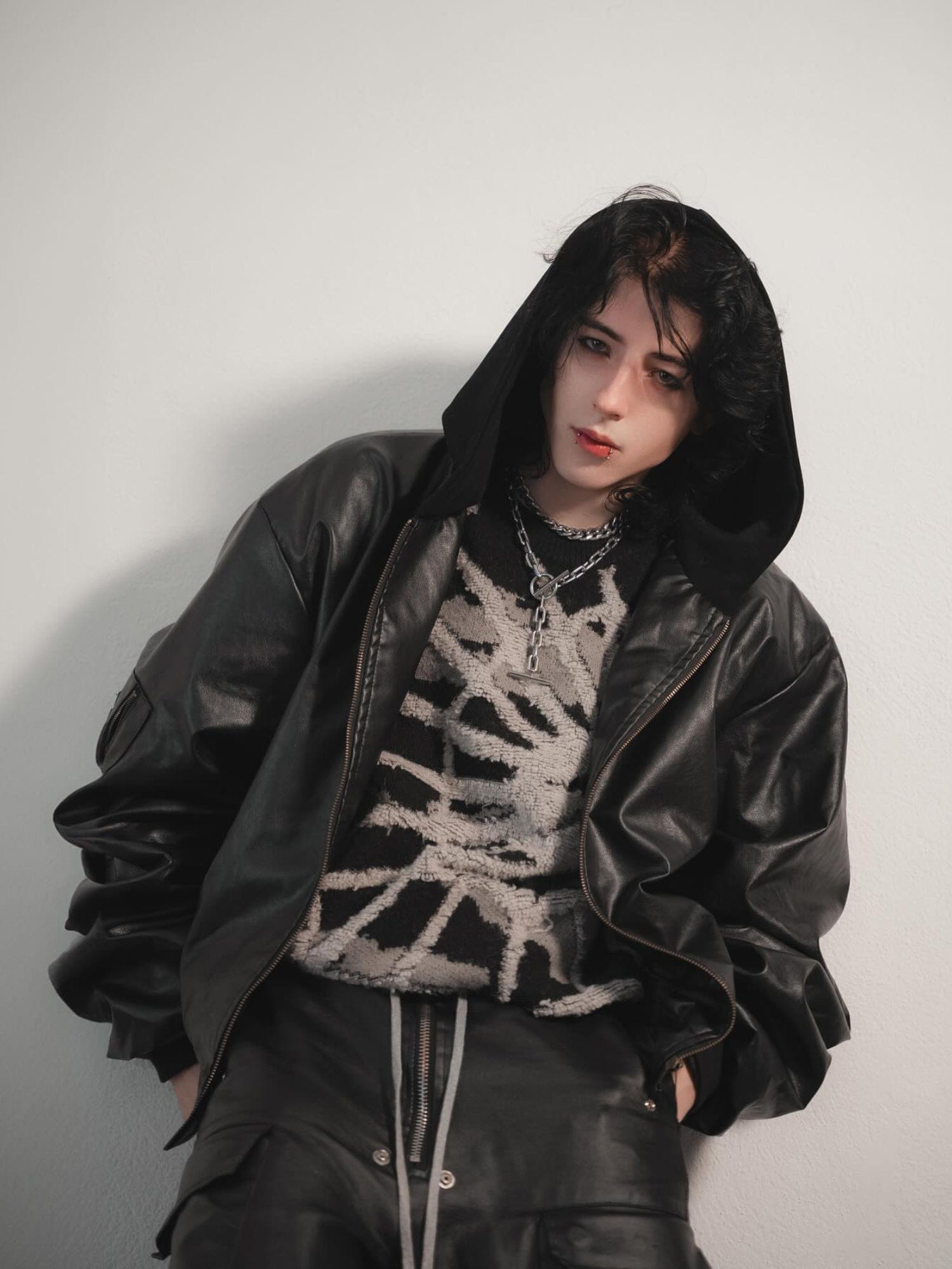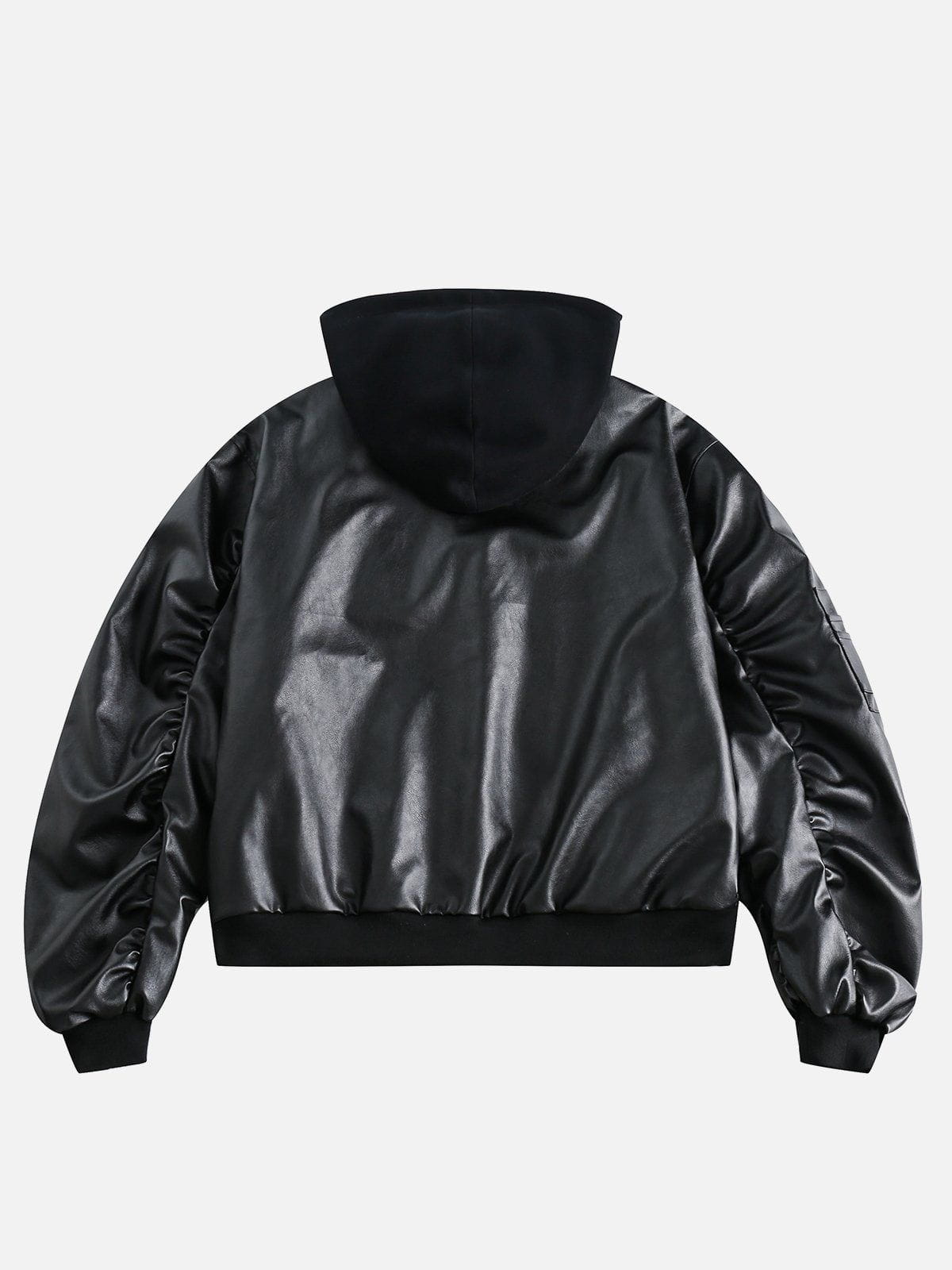 Immerse yourself in the allure of faux leather, as this jacket seamlessly combines edgy style with modern comfort. The solid design exudes timeless elegance, while the hood adds a touch of versatility. Elevate your urban wardrobe with this statement piece, where fashion meets attitude in every detail.
