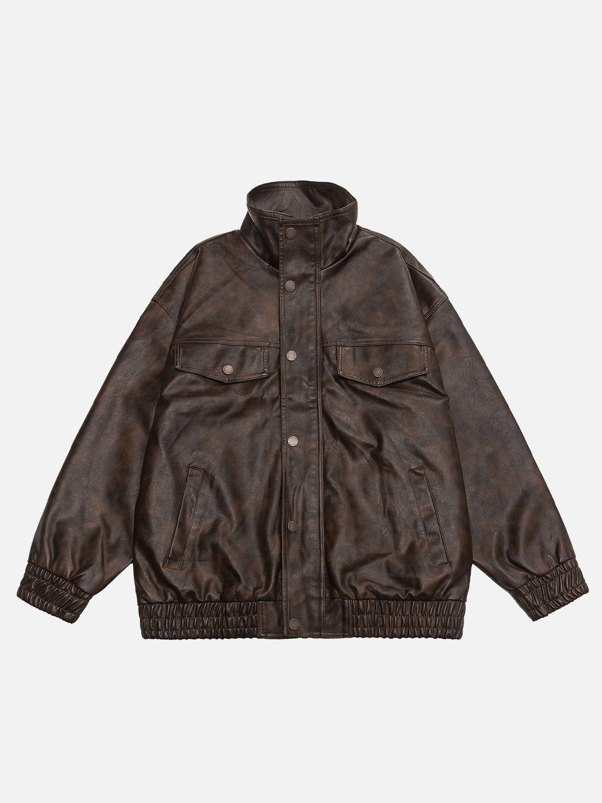 Embrace a vintage vibe with the faux leather jacket. Inspired by 90s fashion and washed for a worn-in look, this jacket exudes effortless coolness. Perfect for adding a touch of edge to any outfit.