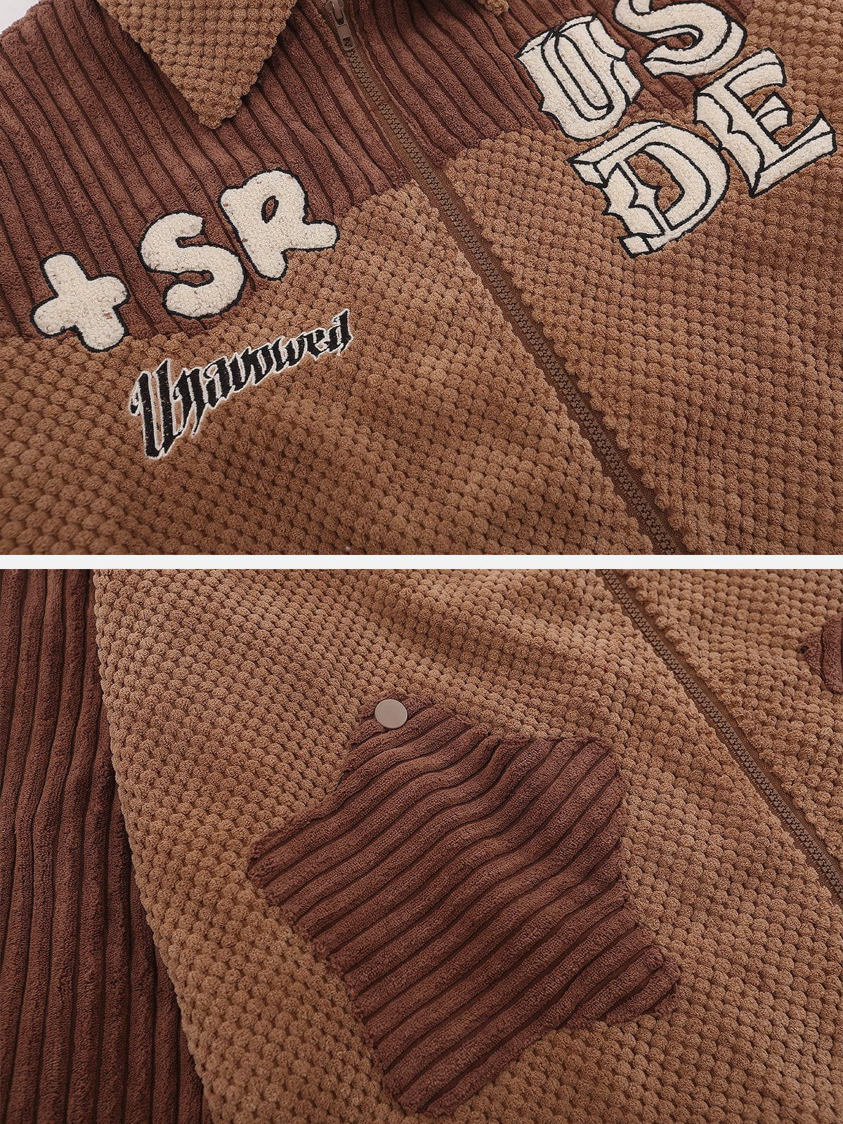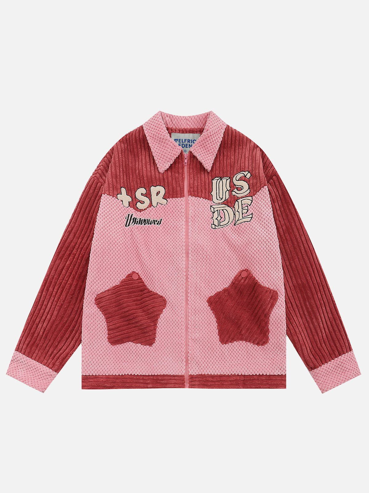 Color Blocking Star Pocket Corduroy Jacket