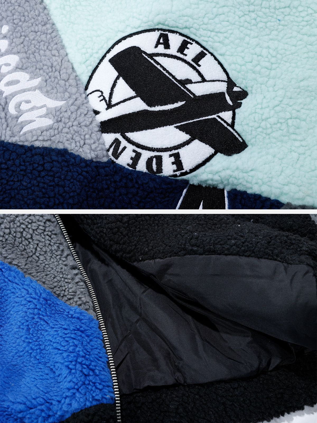 - Slanted welt pockets + Zip closure along the front