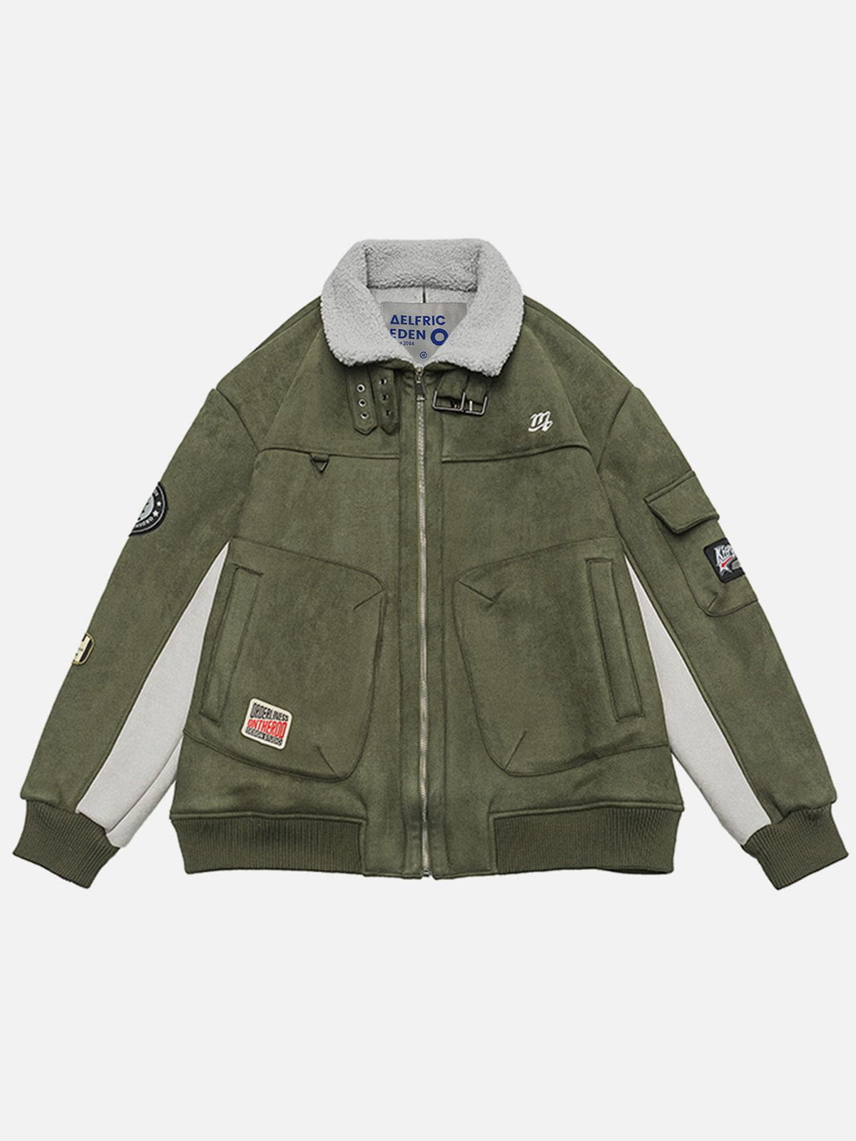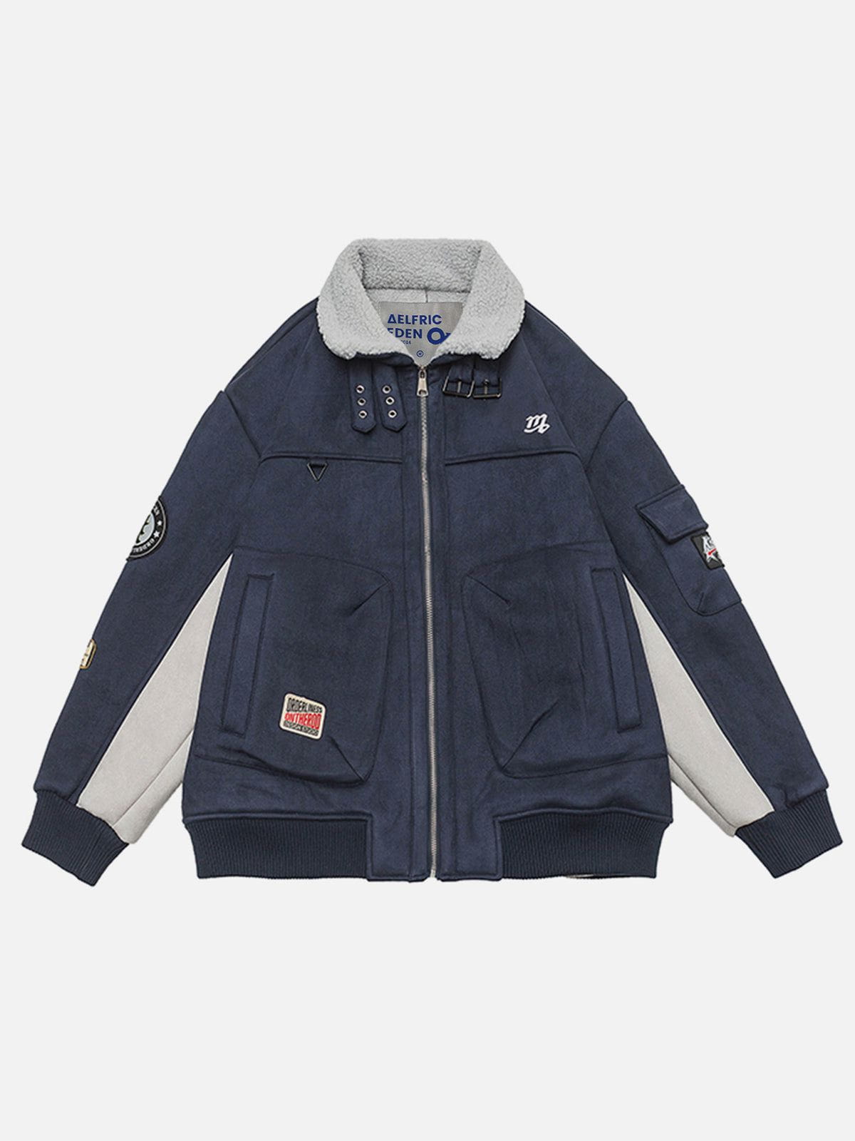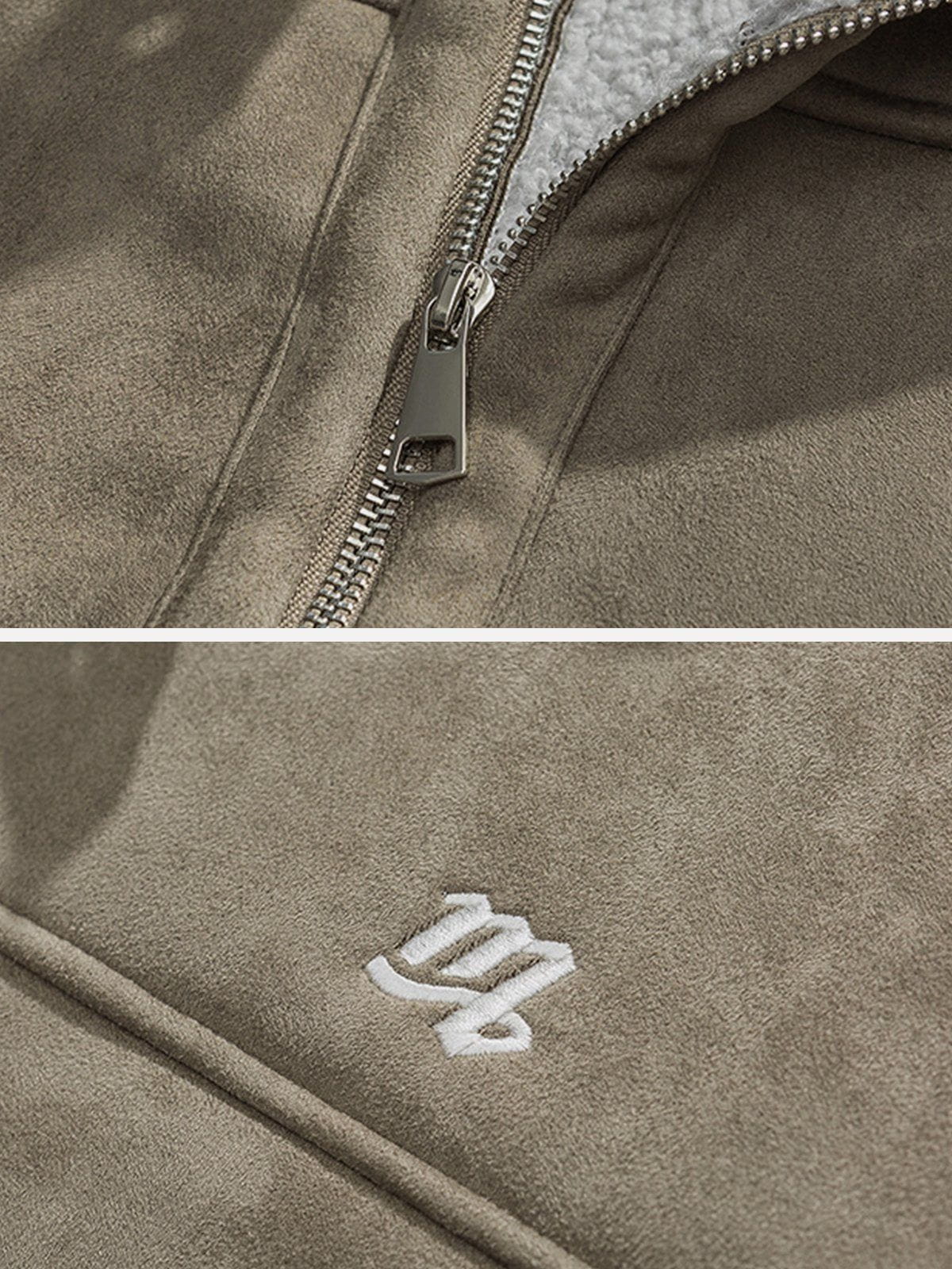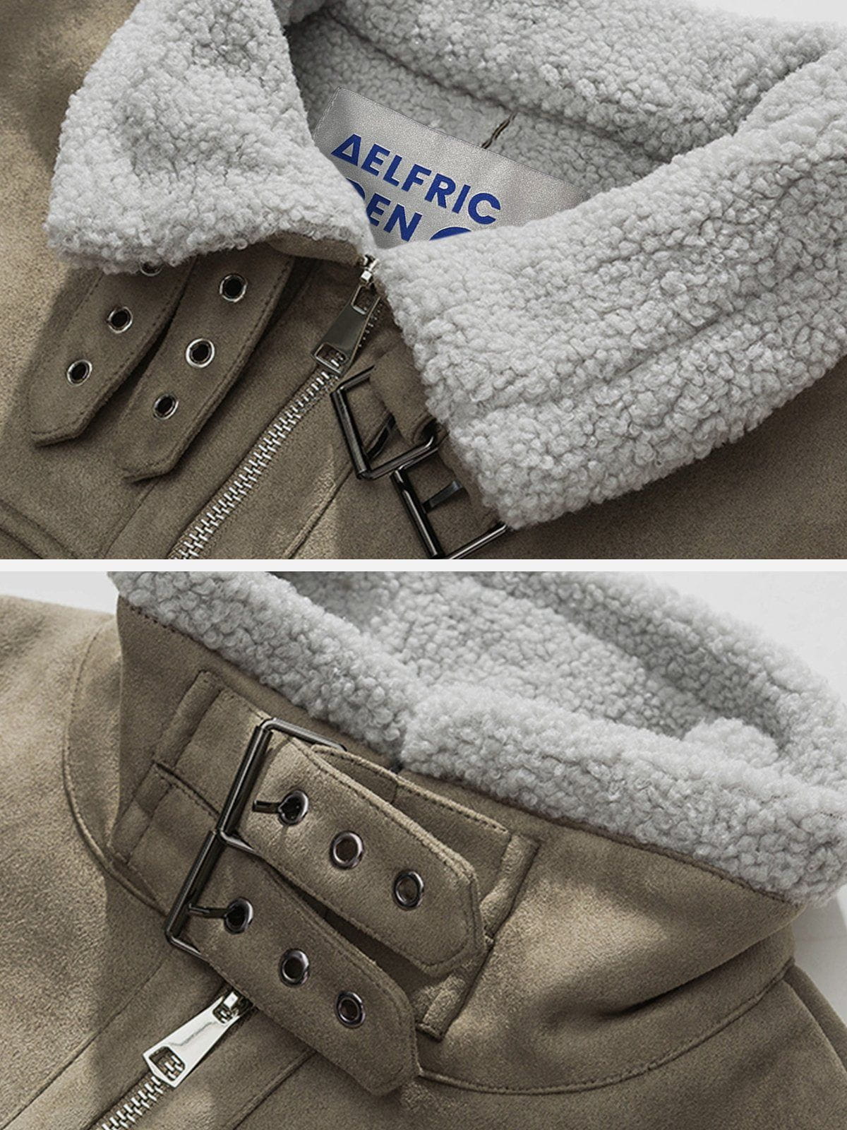 Clothing details: Sherpa collar design.